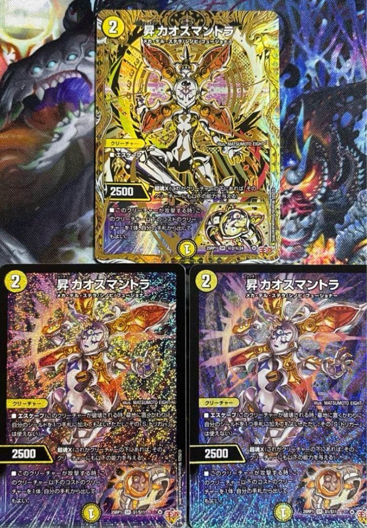 デュエルマスターズppp 3枚です。交渉中でも即購入可能○バラ売り不可×まとめ買い対応○。デュエルマスターズ 聖拳編 第一弾 エターナルアームズ BOX シュリンク付き。プレイ用としてご検討ください。神聖龍 エモーショナル・ハードコア 金トレジャー 2枚レビュー