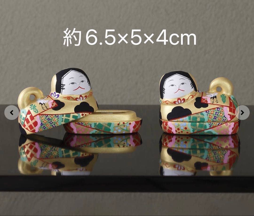 サイズ:約6cmx3cm×4.5cm。犬筥と雛人形のセット。箱入り。- デザイン: ひな人形- 色: 赤、白、金、青- 素材: 陶器- 付属品: 屏風付き- 用途: ひな祭りの飾りご覧いただきありがとうございます。